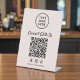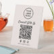 Make it effortless for customers to connect with your brand using this modern light pink tabletop pedestal sign. Designed for countertops, checkout areas, and event tables, this sign features a clean QR code layout that instantly directs customers to your website, menu, booking page, or Facebook, Instagram, and TikTok social media profiles. Zazzle automatically generates the QR code from the website link you provide, ensuring accuracy and a seamless setup. The minimalist design keeps your branding front and center, with space for your logo at the top and a clear call-to-action that encourages engagement. Perfect for retail stores, cafés, boutiques, salons, trade shows, pop-ups, and professional events, this sturdy pedestal sign stands upright and remains highly visible without taking up valuable space.