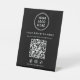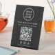 Make it easy for customers to connect with your business at a glance with this custom QR code black pedestal sign, designed for clean, modern, and effective in-store communication. Featuring a minimalist layout, bold white typography, and your logo, business name, Facebook, Instagram and TikTok social media handle, and a prominent scannable QR code, this tabletop sign delivers a polished, professional presence on any counter or table. Perfect for restaurants, cafés, salons, boutiques, clinics, offices, hotels, and pop-up shops, this pedestal sign allows customers to instantly access your website, menu, services, pricing, booking page, or promotions with a single scan. Durable, freestanding, and easy to display, this QR code pedestal sign helps streamline customer interactions, increase website traffic, and support a modern, contactless experience—all while reinforcing your brand with a clean, cohesive design.