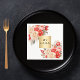 Business logo red ivory florals white napkin