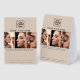 A minimalist beige simple business Paper Table Tent that allows you to customize your business logo, business title, business description, business contact details and 3 photos. A perfect business Paper Table Tent template for all types of businesses. Customize this professional beauty salon business Paper Table Tent and make it your own!