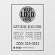This simple and elegant business store hours window cling is perfect for any modern business. It features simple typography and an organised layout for a pleasing aesthetic. It includes your business logo, store hours, phone number, and social media information.