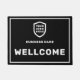 A simple custom black business welcome door mat in a modern minimalist style which can be easily updated with your company logo and greeting.