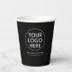 Elevate your brand with our Business Logo | Stylish Black Modern Professional Paper Cups. These personalised and custom paper cups are designed to showcase your business logo, slogan, and website or any information you wish to promote. The sleek black design adds a touch of professionalism, making them ideal for corporate events, meetings, or simply enjoying your daily coffee. Tailor these cups to suit your brand and make a lasting impression. Elevate your brand presence with these stylish and modern paper cups, perfect for both coffee enthusiasts and corporate settings.