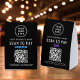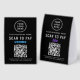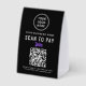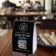 Make cashless payments simple and seamless with this customizable Business Logo Venmo Zelle QR Code Scan To Pay two-sided black and white paper table tent sign. Designed for salons, boutiques, cafés, vendor booths, and small businesses, this clean and modern tabletop display makes it easy for customers to send payments instantly using your Venmo or Zelle QR code. Add your business logo and your name, contact details, website, or other text for a polished, professional look that elevates your checkout area.