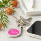 Business Logo With Pink Background on Swirl Metal Key Ring