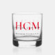 Business Modern Red Black 3 Letter Monogram Logo Whiskey Glass