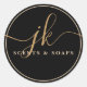 Business Monogram Script Logo Black Gold Stickers. Elegant business product labels featuring a monogram initials logo in fancy calligraphy script with swashes and your custom text in your choice of all colors (shown in gold on black). CHANGES: Change any text font style, color, size, spacing and placement or background and circle frame color in EDIT to coordinate with your brand. ASSISTANCE: For help with design modification or personalization or if you would like coordinating items, contact the designer BEFORE ORDERING via the Zazzle Chat MESSAGE tab or email makeitaboutyoustore@gmail.com.