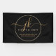 Business Monogram Script Logo Black Gold Banner. Elegant business promotional banner sign featuring a professional monogram initials logo in fancy calligraphy script with swashes and your contact information or other custom text in your choice of all colours (shown in gold on black). CHANGES: Change any text font style, colour, size, spacing and placement or background and circle frame colour in EDIT to coordinate with your brand. Ideal for vendor booth and business identification signage. ASSISTANCE: For help with design modification or personalisation or if you would like coordinating items, contact the designer BEFORE ORDERING via the Zazzle Chat MESSAGE tab or email makeitaboutyoustore@gmail.com.