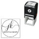 Business Monogram Script Logo Name Rubber Stamp. Elegant business self-inking stamp featuring a monogram initials logo in fancy calligraphy script with swashes and your custom text. CHANGES: Change any text font style, colour, size, spacing and placement in EDIT. ASSISTANCE: For help with design modification or if you would like coordinating items, contact the designer BEFORE ORDERING via the Zazzle Chat MESSAGE tab or email makeitaboutyoustore@gmail.com.