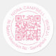 Business Name Address Circle Frame QR Code Pink Classic Round Sticker