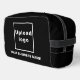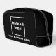 Black dopp kit that you can customise by uploading your business logo and typing your business name. You can include it in your promotional products, giveaway items or gifts to your customers or clients, a marketing strategy to advertise your business or to promote your brand. Accessory that you can use to build and maintain brand name awareness. Please check the appearance of the front and back sides after uploading your business logo and typing your business name. If the appearance is pleasing to you, you can place your order now. If you need to resize and reposition the logo and name of your business to fit in the template, please adjust in the design tool. You can also change the font style, font colour and background colour in the design tool.