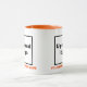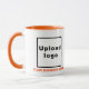 Orange colour combo mug that you can customise to put your business name and logo to build brand name awareness while your customers enjoy sipping the aromatic and tasty coffee or tea that you served to them in your coffee shop, diner or restaurant business. Customisable mug as promotional product, giveaway item or gift to your customers or clients, a marketing strategy to advertise your business or to promote your brand. Please check the appearance on front and back sides after uploading logo and typing your business name. If the appearance is pleasing to you, you can place your order now. If you need to resize and move the logo and your business name to fit on this mug or on the size and style that you will choose, please change in the design tool. You can also change the font colour and font style in the design tool.