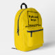Yellow backpack that you can customise by typing your business name and uploading your business logo. Bag that you can include in your promotional products, giveaway items or gifts to your customers or clients, a marketing strategy to advertise your business or to promote your brand name. Customisable backpack that you can use to build brand name awareness. Please check the appearance after typing your business name and uploading your business logo. If the appearance is pleasing to you, you can place your order now. If you need to resize and reposition your business name and logo to fit in the template, please adjust in the design tool. You can also change the background colour, font colour and font style in the design tool.