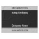 This grey and black tablecloth has a text template. There's display text for a company name and website (or a custom message) to appear twice on the tablecloth. The text is in opposite directions from the other side so that the text can be read on both sides of the table.