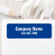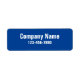 These labels have a two-line text template. The first line is your company name. The second line is for your phone number. Both lines can be edited to show your custom message. The text is white and bold. The labels are deep blue.