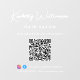 Elegant and chic custom window cling for your business featuring your name in a stylish white signature script and business type below in simple modern white typography. Input your website URL address to create a QR code for customers and clients to scan for a list of your products, services, hours, etc. Add your instagram and facebook user ids for customers to follow you on social media.