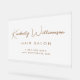 Chic frosted acrylic sign for your business with a minimalist vibe featuring your company name or brand in a stylish gold signature script and additional text below if desired in modern gold typography.