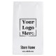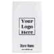 Are you looking for custom-printed shopping bags? You can customise these paper shopping bags with your company logo, business name, and website address. The text is black. The bag is white.