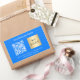 A light, bright blue background. Personalise and add your business name, your own business logo, qr code to your website and a text. White text.