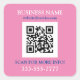 Business Name Promo, QR Code, Pink Blue White Square Sticker