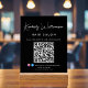 Chic black acrylic sign featuring your name in a stylish white signature script and business in modern white typography. Input your website address to create a scannable QR code for customers and clients to see your products, services, hours, etc. Add your instagram and facebook user ids for customers to follow you on social media.