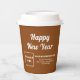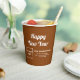 Happy New Year! A new beginning. A fresh start. Holiday to celebrate this January and to advertise also your business. Paper cup for your cafe business that you can customise to put your business brand and with New Year greeting. Customise it and use it to greet your customers this New Year and to advertise your business or to promote your brand name while your customers enjoy sipping the tasty aromatic coffee that you served to them. Customisable paper cup that you can use to build brand awareness. Design colours are light brown and white texts on brown background. To customise this paper cup, upload your business logo, type your business name, address and phone number. Please check the appearance on front and back sides after uploading logo and typing texts. If the appearance is pleasing to you, you can place your order now. If you need to resize and move the logo and texts to fit on this paper cup, please change in the design tool. You can also change the background colour, font colour and font style in the design tool. Happy New Year! Wishing you more sales this holiday and the years to come.