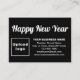 Happy New Year! A new beginning. A fresh start. Holiday to celebrate this January and to advertise also your business. Enclosure card that you can customise to put your business brand and with New Year greeting. Customise it and use it to greet your customers or clients this New Year and as marketing material to advertise your business or to promote your brand name. You can also use it as accessory of packaging material of your product. Customisable enclosure card that you can use to build brand name awareness. Design colours are white texts on black background. To customise this enclosure card, upload your business logo, type your business name, address, phone number, e-mail and website or your business social media page. Please check the appearance on front and back sides after uploading logo and typing texts. If the appearance is pleasing to you, you can place your order now. If you need to resize and move the logo and texts to fit on this enclosure card or on the size that you will choose, please change in the design tool. You can also change the background colour, font colour and font style in the design tool. Happy New Year! Wishing you more sales this holiday and the years to come.