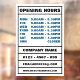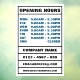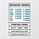 Business Opening Hours and Information Window Cling by the Business Card Store.