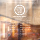 This versatile transparent window cling combines your operating hours, contact details, and a QR code. It allows you to prominently display your custom logo and list your operating hours in clear white text, ensuring maximum visibility. Uploading your QR code with relevant information for your customers is a breeze.
