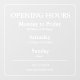 Make your business hours clear and stylish with this customisable Window Cling! Perfect for storefront doors and windows, this reusable cling displays your opening hours with a clean, professional design that catches the eye. Easy to apply and remove without residue — ideal for shops, cafes, salons, and offices.