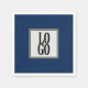 This sophisticated and professional napkins features a simple design with a navy blue coloured background. A monogram text or image area appears in the centre, framed with two thin dark grey borders. A sample logo is placed in the centre of the box. You can personalise these napkins and add your own custom company or business logo for your party or event.