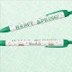 Minimal festive Easter pattern background stylish typography green "Happy Spring" and ample room for business or personal script name(s) decorate this stylish black ink pen with green trim. Change the text to make it yours using the simple Template Provided. Ideal for a party favour, personalised thank you, promotional giveaway, friends and family novelty gift. Minimum purchase of 2. See "About This Product" at side for more information. Made in U.S.A.