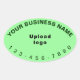 Customisable sticker that you can put your business phone number for customers to easily find it when they need to call you to place their orders or ask enquiries. You can use it as marketing material to advertise your business or to promote your brand name to customers or clients. Customisable sticker that you can use to build brand name awareness. You can also use it as accessory of product packaging materials. Designs are dark green texts on light green background and oval shape. To customise this sticker, upload your business logo, type your business or company name and phone number. After uploading logo and typing texts, please check the appearance. If the appearance is pleasing to you, you can place your order now. If you need to resize and move the logo and texts to fit on this sticker, please change in the design tool. You can also make other changes according to the appearance that you prefer in the design tool such as changing the background colour, font colour and font style.