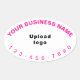 Customisable sticker that you can put your business phone number for customers to easily find it when they need to call you to place their orders or ask enquiries. You can use it as marketing material to advertise your business or to promote your brand name to customers or clients. Customisable sticker that you can use to build brand name awareness. You can also use it as accessory of product packaging materials. Designs are pink texts on white background and oval shape. To customise this sticker, upload your business logo, type your business or company name and phone number. After uploading logo and typing texts, please check the appearance. If the appearance is pleasing to you, you can place your order now. If you need to resize and move the logo and texts to fit on this sticker, please change in the design tool. You can also make other changes according to the appearance that you prefer in the design tool such as changing the background colour, font colour and font style.