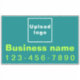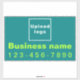 Teal rectangle large vinyl sticker that you can customise for customers to easily find your business phone number when they need to call you or place their orders. You can use it marketing material to advertise your business. You can also use it as product label for large boxes. Font colour is yellow green. To customise this sticker, upload logo, type business or company name and phone number. After uploading logo and typing the texts, check the appearance. If the appearance pleases you, you can place your order now. If you need to resize and move your logo and texts to fit on this sticker or on other sizes that you will choose, click customise further. After resizing and moving the logo and texts, click done.
