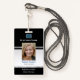 A brushed silver and black design badge with Business Name, Photo, Name, Logo and All Info; plus place for scan bar and numbers.