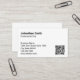This white business card has black text that you can edit to show the details about you and your business. There are lines for your name, professional job title, business name, address, phone number, and website. All text can be edited or deleted. There's a template for your QR code. (Remember to enter your website URL for the QR code to work correctly.)