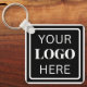 Business QR code and Logo Basic keychain. Simple Minimalist professional pedestal sign on white and black. The template has space for basic information like name, company name or professional service, website, phone, fax, location, logo, and even instant appointment booking QR Code. With a single scan, your customers can access your service menu and real-time availability. Click on "personalise this template" for product customisation.