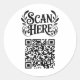 Elegant “Scan Here” Sticker – Modern QR Logo for Business Branding