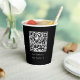 A professional business qr code and text paper cup with a black background. Perfect for your business, office, corporate event, hospitality business etc.