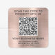 Make it easy for customers to connect with your brand using these elegant QR code stickers, designed for small businesses, shops, and service professionals. Enter your website address and Zazzle will automatically generate a scannable QR code that links directly to your site — perfect for boosting online traffic and customer engagement. Featuring a rose gold brushed faux metallic background, these personalised stickers combine modern style with professional branding. Each sticker includes space for your business name, address, and contact info. Ideal for product packaging, shipping boxes, marketing inserts, or business promotions.