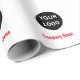 It's easy to create branded wrapping paper for your company's corporate gifts. Simply replace the display image with your company's logo. Under the image, there's a line of bright red display text for your company's name or a custom message. The wrapping paper is white.