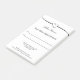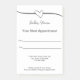 This beauty salon appointment reminder has a line of black handwritten-style script for your business name. The are two lines to write the date and time of the client's next appointment. The bottom has lines of display text for your business address, phone number, and a custom message. All text can be edited or deleted.