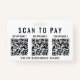 Modern badge for your business to collect payments on the go with the option to upload 3 QR codes for different contactless payment apps for customers to scan for payments. Upload your QR codes and add your business name in simple typography.