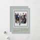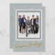Send warm holiday wishes from your company with this business Season’s Greetings team photo card. The front features your team photo framed by a soft grey and blue background with white snow-like accents and “Season’s Greetings” in elegant gold script. The back includes space for a printed message, your company name, and signatures for a personal touch. Perfect for thanking clients, partners, and colleagues while celebrating the season.