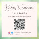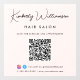 Chic custom light pink window decal cling sign for your business featuring your name in a stylish signature script and business type in simple modern typography. Input your website address to create a QR code for customers and clients to scan for a list of your products, services, hours, etc. Add your instagram and facebook user ids for customers to follow you on social media.