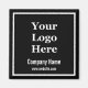 At the top, there's a display image that can be replaced with your company logo. Under the logo, there are two lines of white display text that can be edited to create a custom message. (Shown: Company Name, Website). The magnet is black. The magnet has a white border.