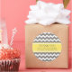 Customisable thank you company name and contact information business stickers in bright lemon yellow, grey and white retro chevron zigzags stripes pattern, perfect for adding your information to bags, parcels or envelopes. Contact us for a custom colour or for matching small business products.