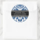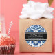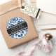 Customisable thank you company name and contact information business stickers in dark blue, black and white classic floral damask vintage pattern, perfect for adding your information to bags, parcels or envelopes. Contact us for a custom colour or for matching small business products.