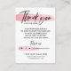 This design feature a black "thank you" in bold hand written script font agains a strokes of faux metallic pink (printed effect).